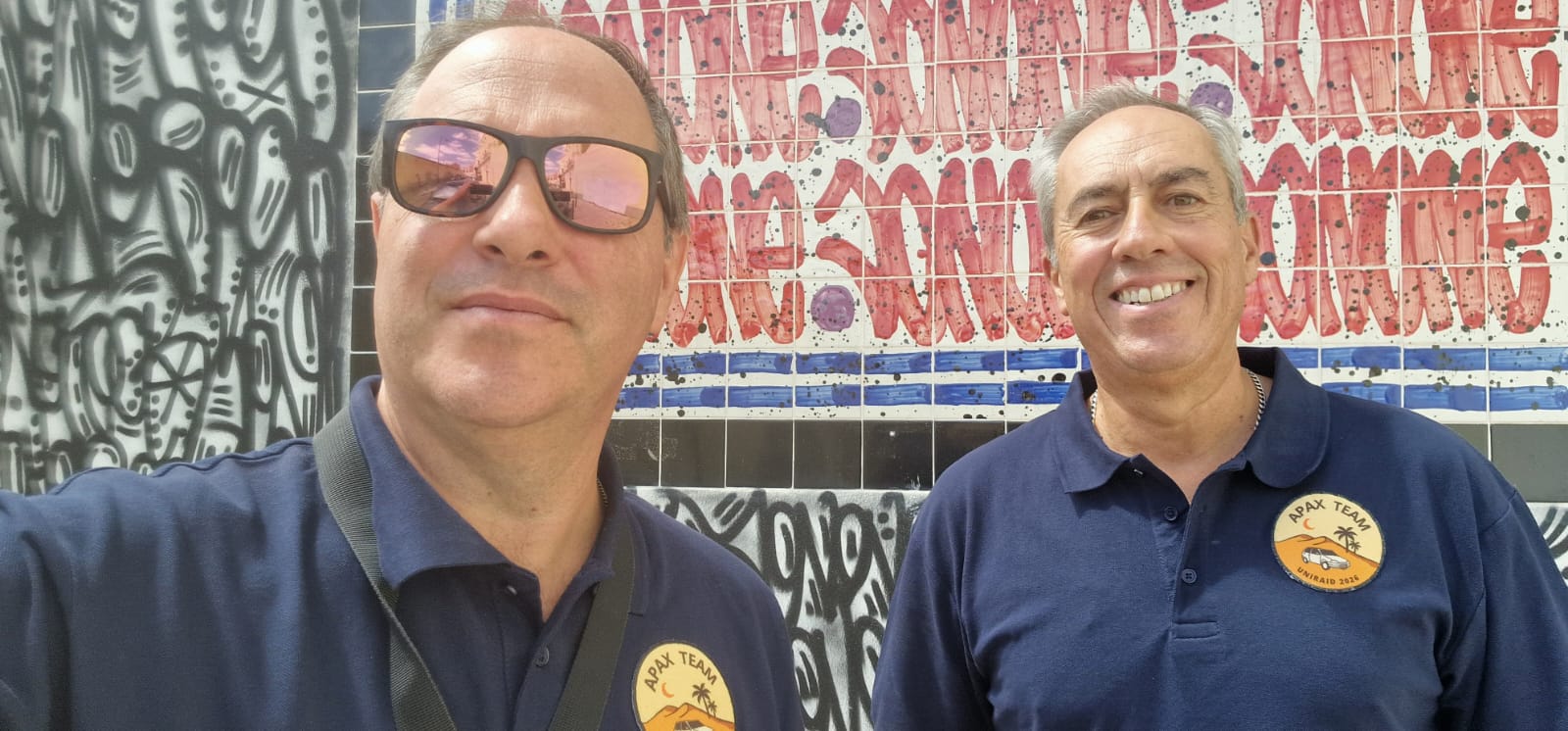L'équipe est composée de deux amis, António, originaire de Lisbonne, et Pedro, originaire de Castelo Branco. En 1998, ils se sont rencontrés pour des raisons professionnelles dans une entreprise du secteur de l'instrumentation et des équipements, basée à Lisbonne. Dès lors, une relation s'est nouée entre eux, qui perdure encore aujourd'hui. Tous deux diplômés en génie électrique de l'ISEL, ils partagent le même goût du bricolage et une attirance fatale pour la rouille et les problèmes des vieilles voitures. C'est dans cet esprit qu'ils relèvent le défi actuel : aller-retour au Maroc dans un véhicule de 34 ans ! Il est intéressant de noter qu'António venait de rentrer du Maroc, où il avait découvert UNIRAID, lorsque Pedro l'a mis au défi de participer à cette action de solidarité au Maroc. La réponse était simple : bien sûr ! C'est ainsi que, le 24 février 2025, le duo a décidé de relever le défi et de poursuivre le projet UNIRAID en février. 2026. Une semaine plus tard, ils acquéraient le véhicule qui leur permettrait d'atteindre les villages marocains reculés pour atteindre les objectifs du projet UNIRAID. À partir de ce moment, l'équipe était au complet : António, Pedro et AX = APAX